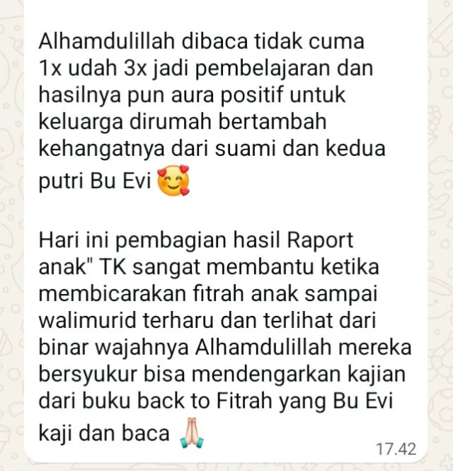 💡BACK TO FITRAH, sebuah buku yang ditulis hasil dari perenungan mendalam dari pengalaman mendampingi remaja yang terluka, yang bisa menjadi panduan konkret bagaimana orang tua bisa mengembalikan perannya sebagai tempat pulang paling aman.